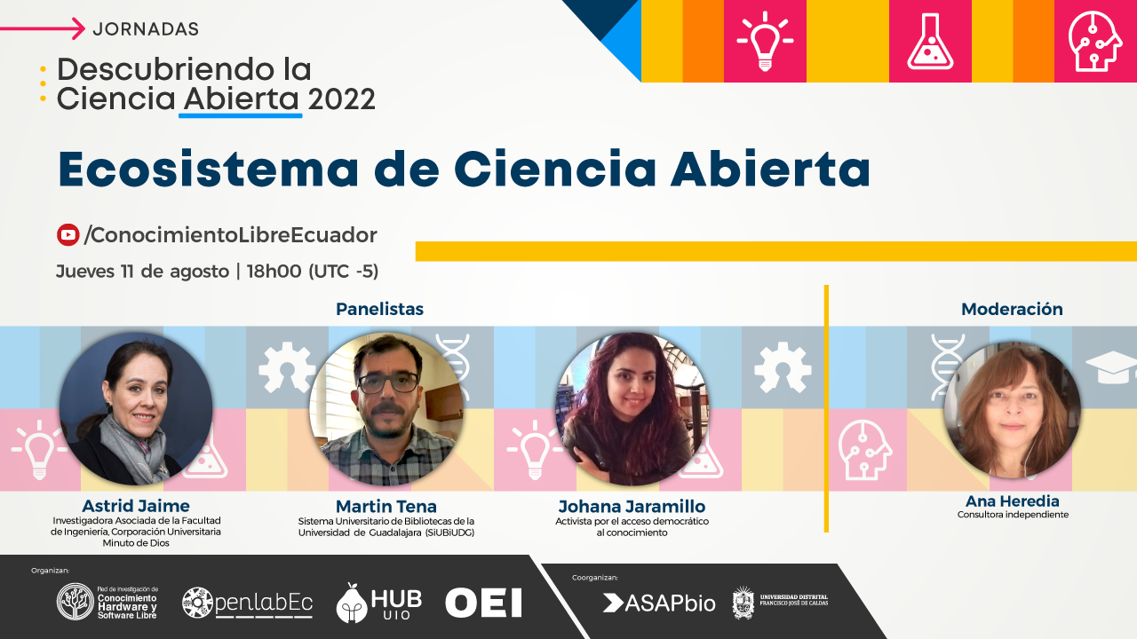 El movimiento de ciencia abierta a tomado fuerza en los últimos años. Son muchos los actores y sus elementos que constituyen un gran ecosistema. ¿Quiénes son esos actores, cómo se interrelacionan e impactan en el ecosistema? ¿Qué rol juegan las bibliotecas? son algunas de las preguntas que guiarán esta conversación.