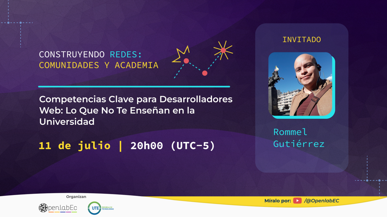 Esta sesión explorará las competencias y herramientas clave que son fundamentales en el mercado laboral para desarrolladores web, pero que a menudo no se cubren de manera exhaustiva en los programas académicos tradicionales. Rommel Gutiérrez, miembro destacado de la comunidad Python Ecuador y Loxalibre, compartirá una visión integral de temas como DevOps, pruebas automatizadas, seguridad web y colaboración en equipos multidisciplinarios.