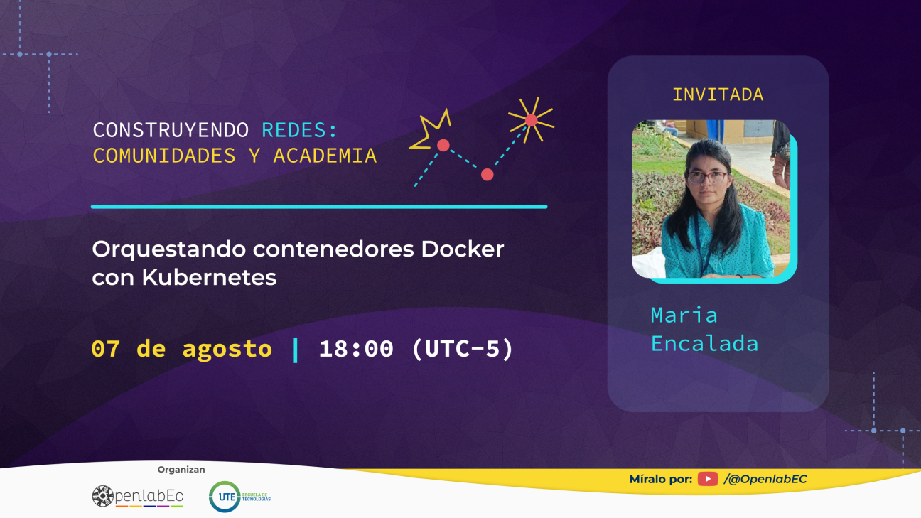 La séptima sesión de la serie "Construyendo Redes: Comunidades y Academia" se centrará en la orquestación de contenedores Docker utilizando Kubernetes. Maria Encalada, Coordinadora de Gestión Comunitaria en Fundación Openlab y activista por el software libre, guiará a los participantes a través de los conceptos y prácticas fundamentales para gestionar contenedores de manera eficiente y escalable con Kubernetes.
