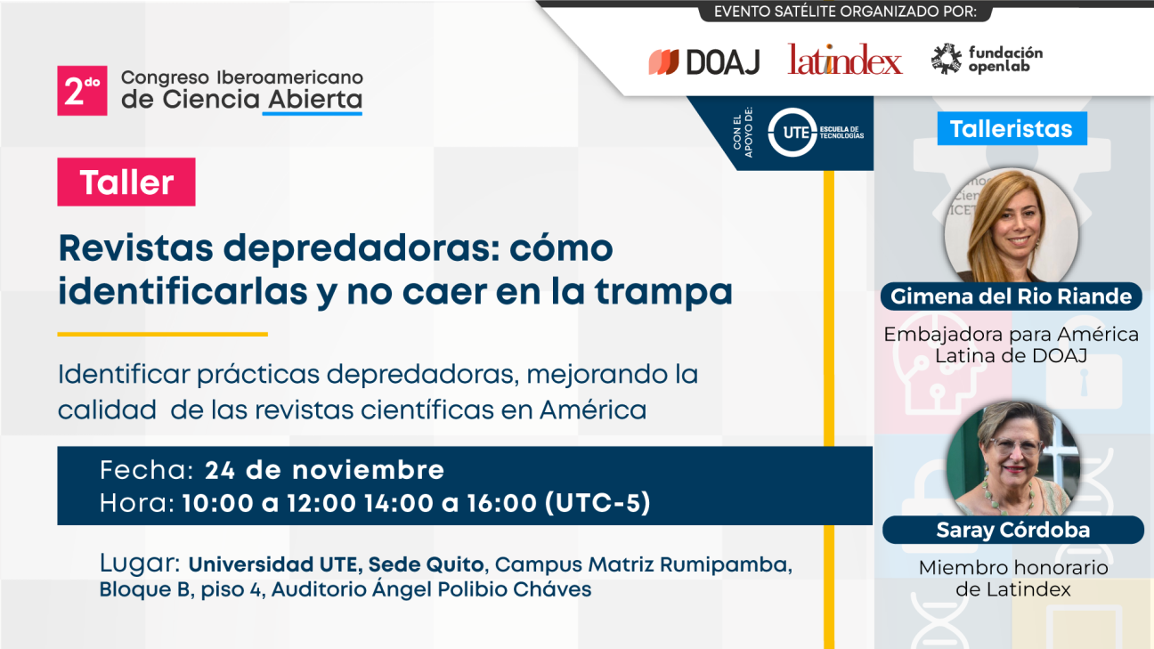 El taller está alineado con una de las líneas temáticas del congreso dedicada a la investigación sobre revistas predatorias, APC y malas prácticas en la ciencia.